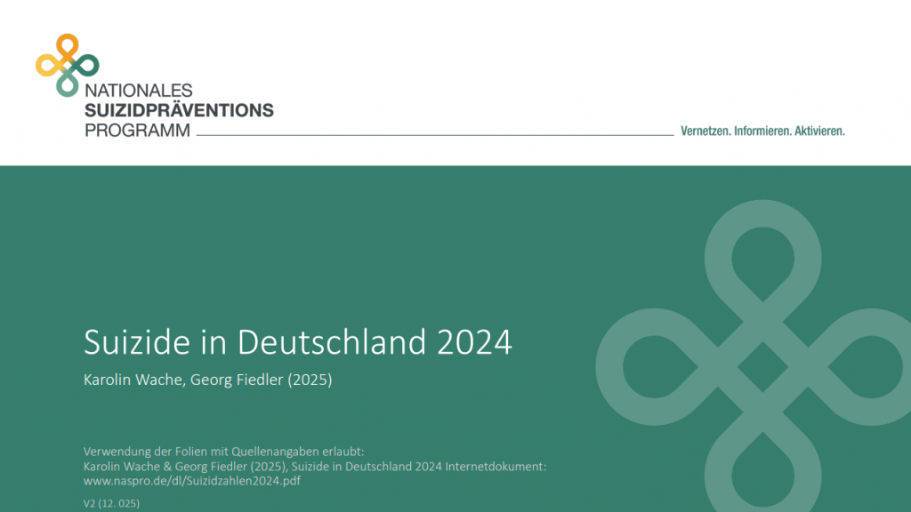 Jedes Jahr veröffentlicht das Statistische Bundesamt die Todesursachenstatistik für Deutschland. Das Nationale Suizidpräventionsprogramm für Deutschland (NaSPro) publiziert regelmäßig eine graphische Darstellung der Entwicklungen der Suizidstatistik.
